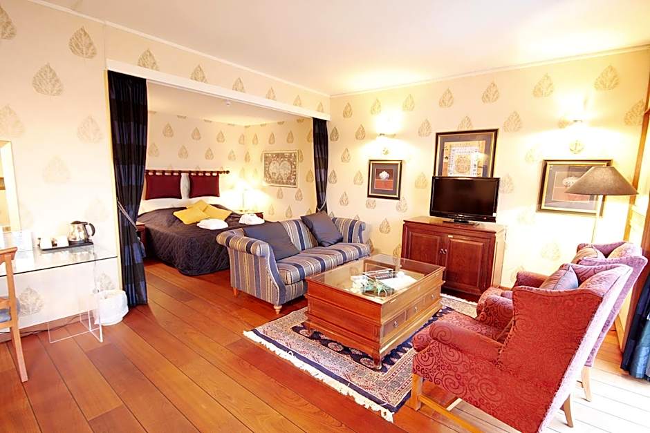 Offers tea/coffee facilities, a mini-bar and separate living room with flat-screen TV. Bathrobes and slippers add extra comfort.